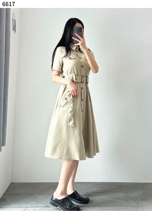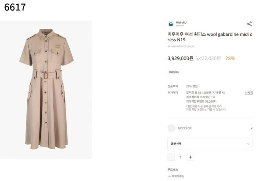 미우미우 트렌치 반팔 원피스 베이지 여성용(1컬러)