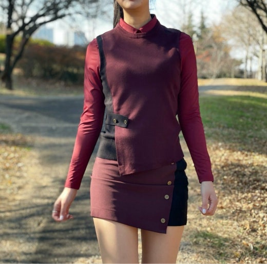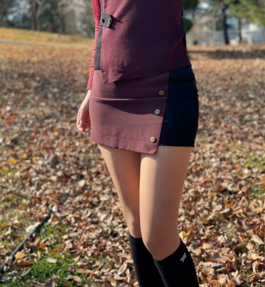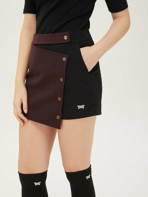 PXG 매.장.판 우먼 FALL 컬러블록 랩스커트 와인&블랙 여성용(1컬러)