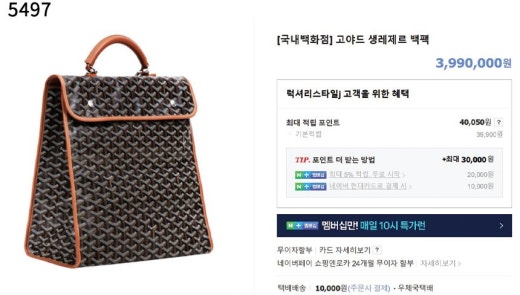 고야드 생레제르 백팩 브라운 남여공용(1컬러)