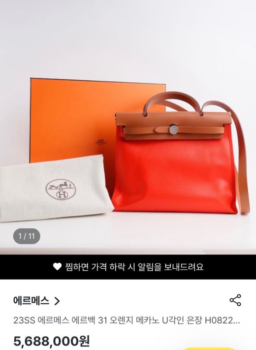 에르메스 에르백 31 오렌지 메카노 여성용(1컬러)