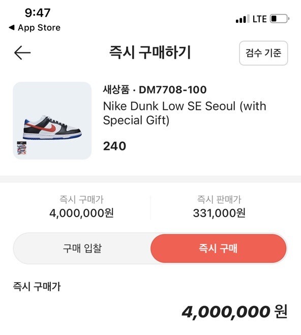 나이키 덩크 로우 서울 에디션 한.정.판 남여공용(1컬러)