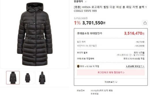 몽클레어 HIRMA 여성패딩 블랙 여성용(1컬러)