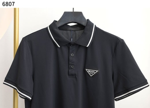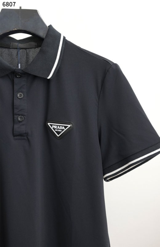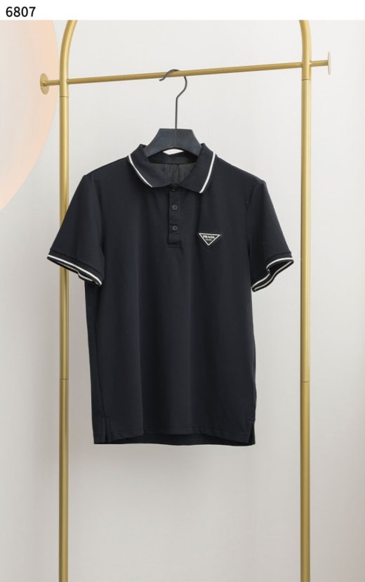 프라다 배색라인 삼각로고 반팔 pk 반팔티셔츠 블랙 남성용(1컬러)
