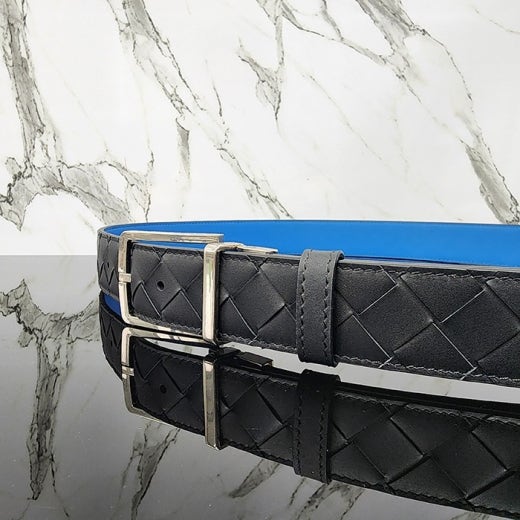 보테가베네타 리버서블 인테르치아토 레더 벨트 블랙&블루 ⚓866 남성용(1컬러)