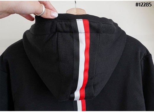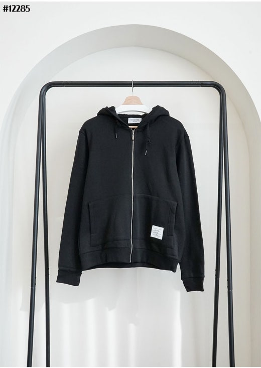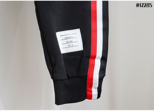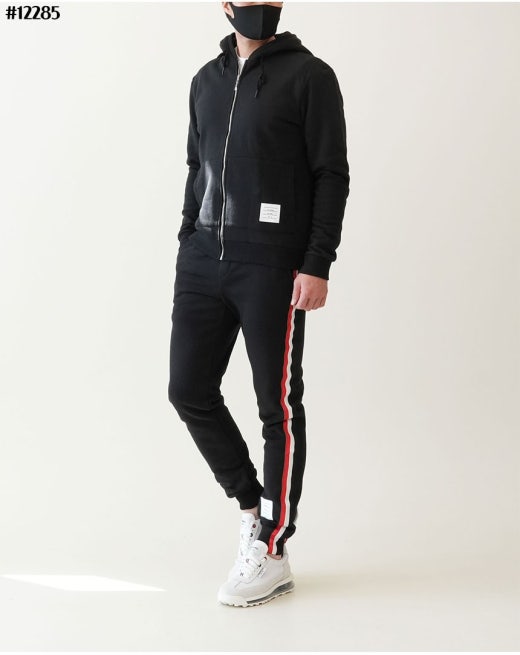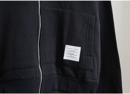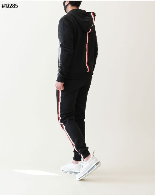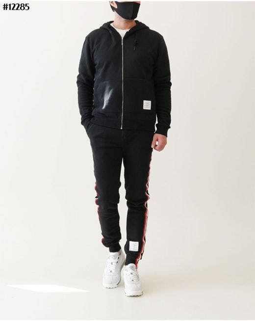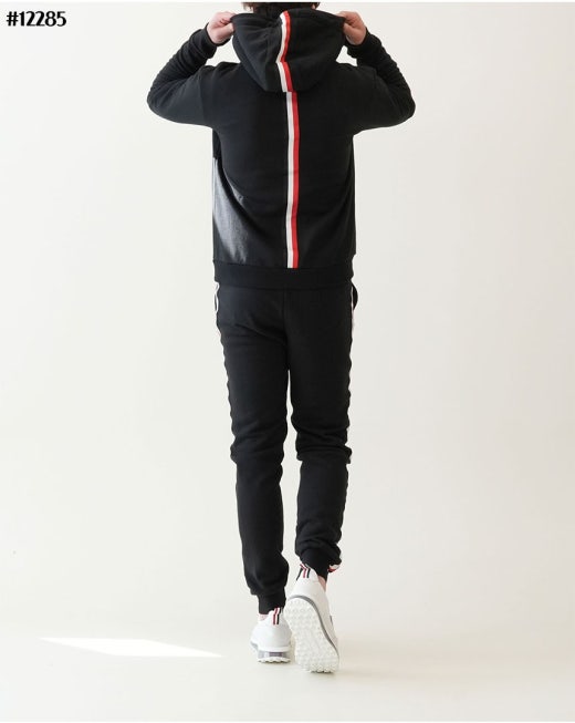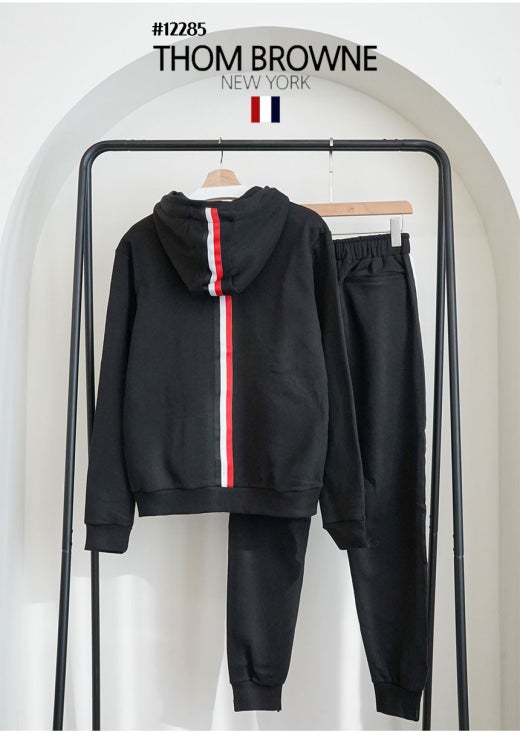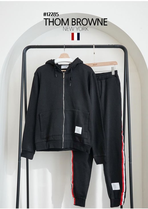 톰브라운 백삼선 투톤라인 기모 후드 집업 & 투톤라인 기모 조거팬츠 셋 블랙 남성용(1컬러)