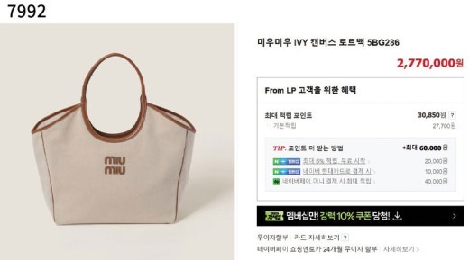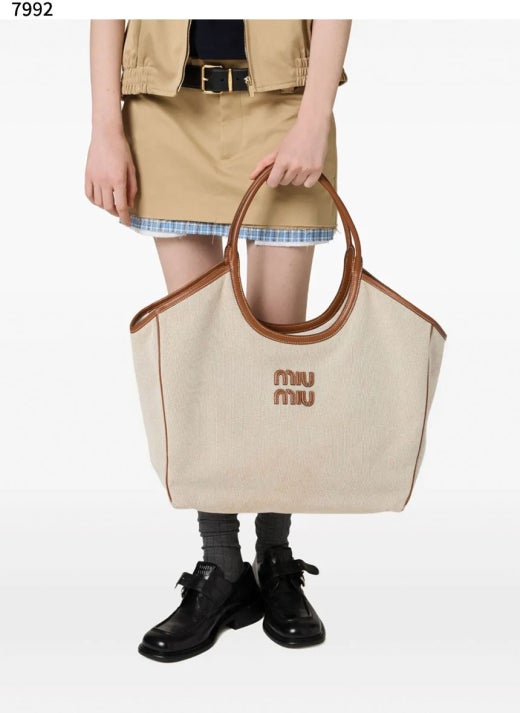 미우미우 아이비 캔버스 토트백 베이지 여성용(1컬러)