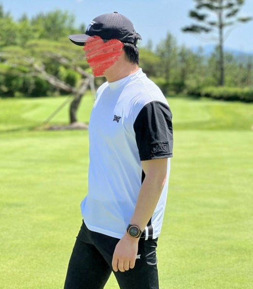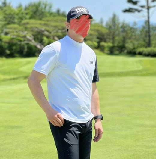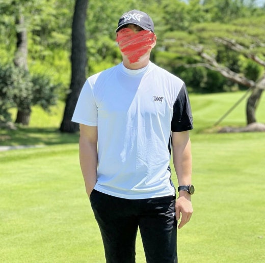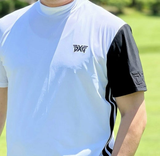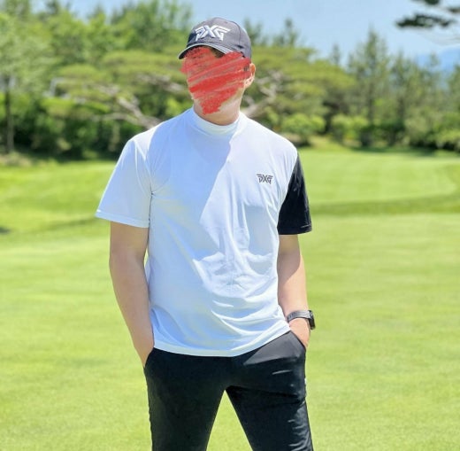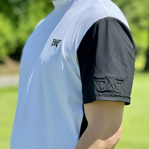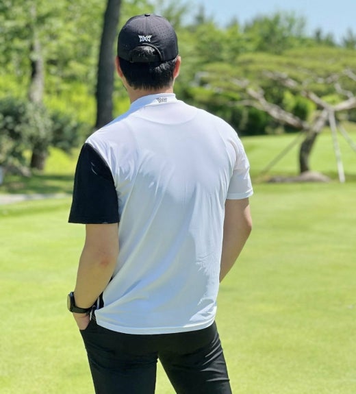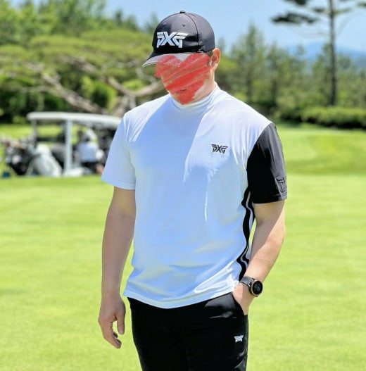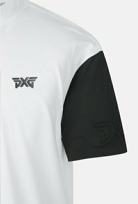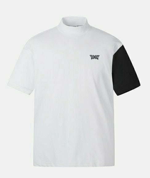 PXG 매.장.판 맨즈 썸머 모크넥 컬러블럭 쇼츠 슬리브 티셔츠 화이트 남성용(1컬러)