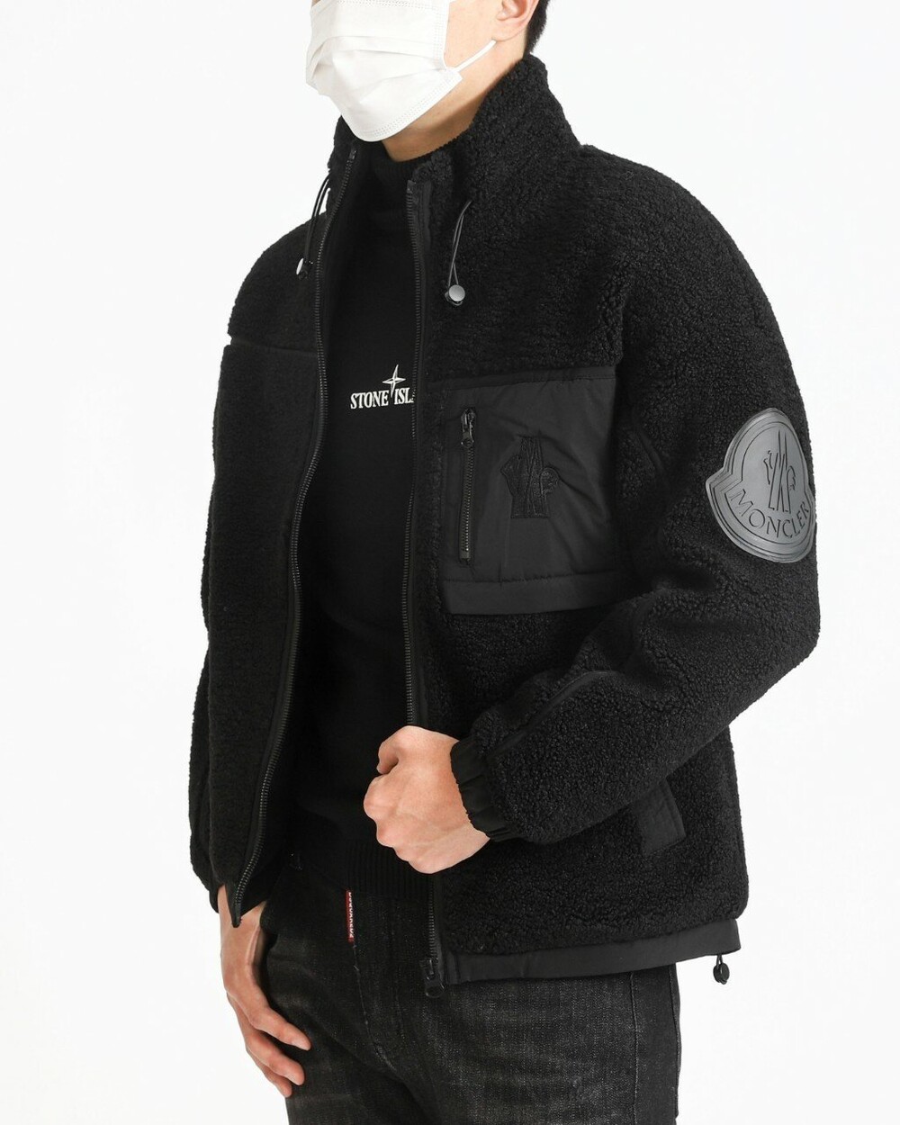몽클레어 수입고급 빅로고 패치 양털 이중후리스 자켓 남성용(2컬러)