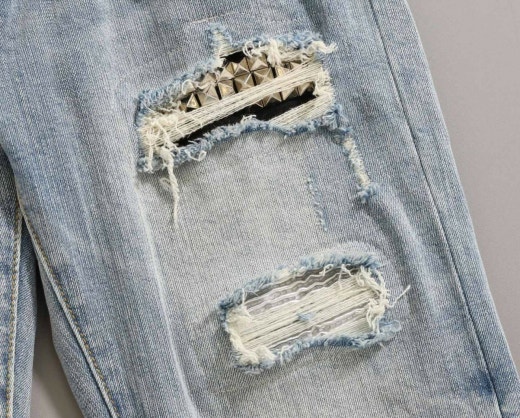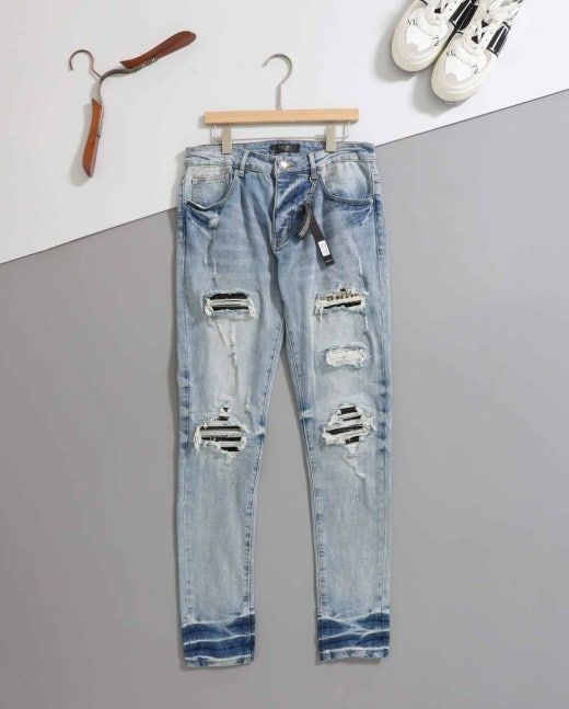 아미리 아트 패치 스트레치 데님 팬츠 연청 남성용(1컬러)