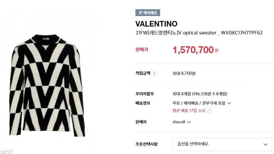 발렌티노 프리미엄 인타르시아 니트 남여공용(1컬러)