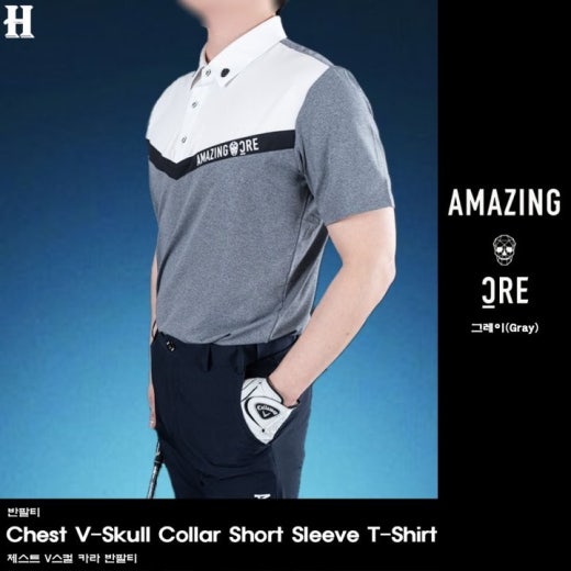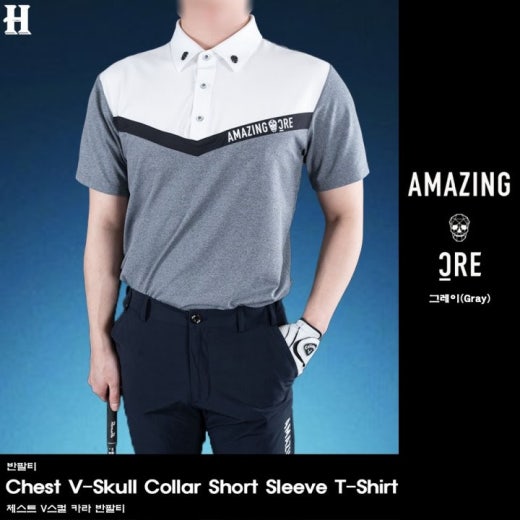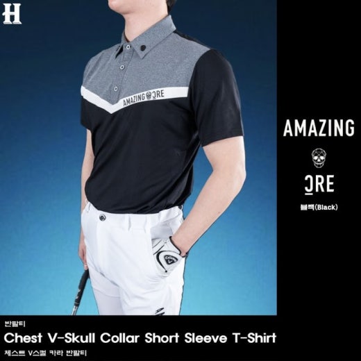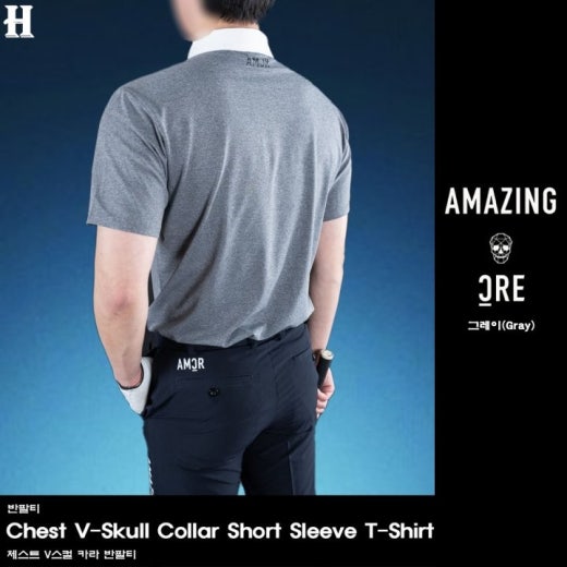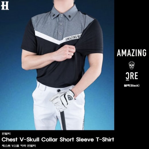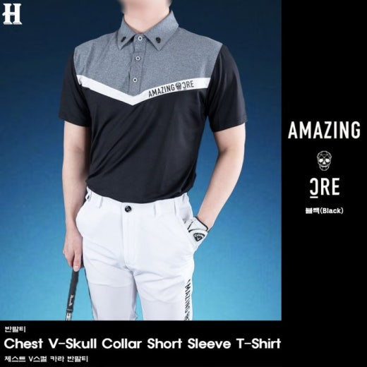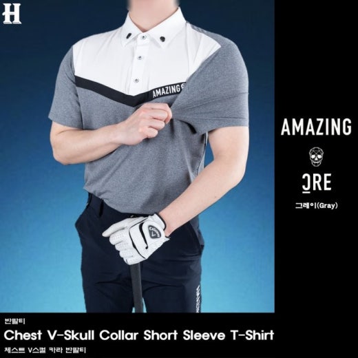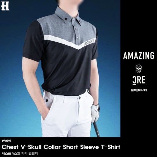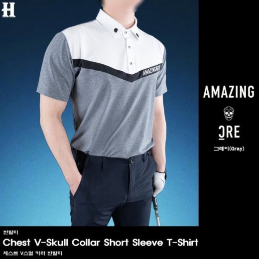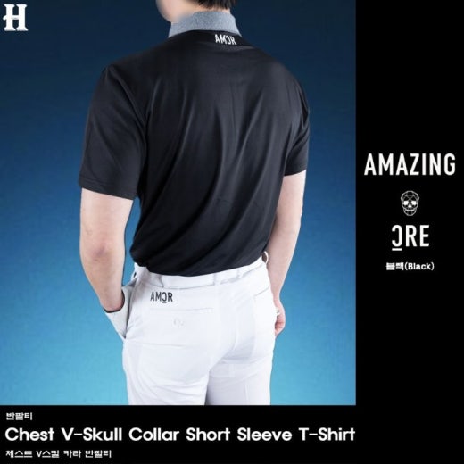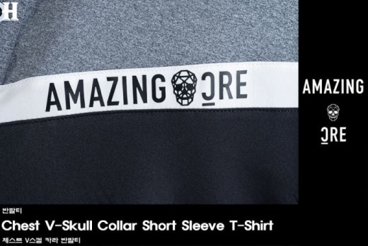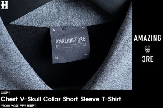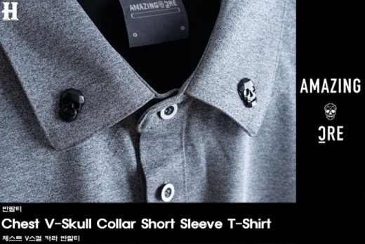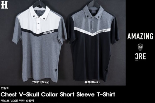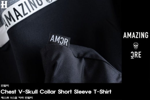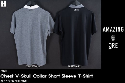 어메이징크리 체스트 V스컬 카라 반팔티 남성용(2컬러)