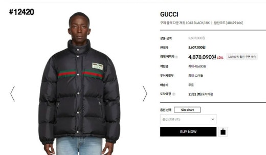 구찌 삼선 로고패치 블랙 다운 패딩자켓 남여공용(1컬러)