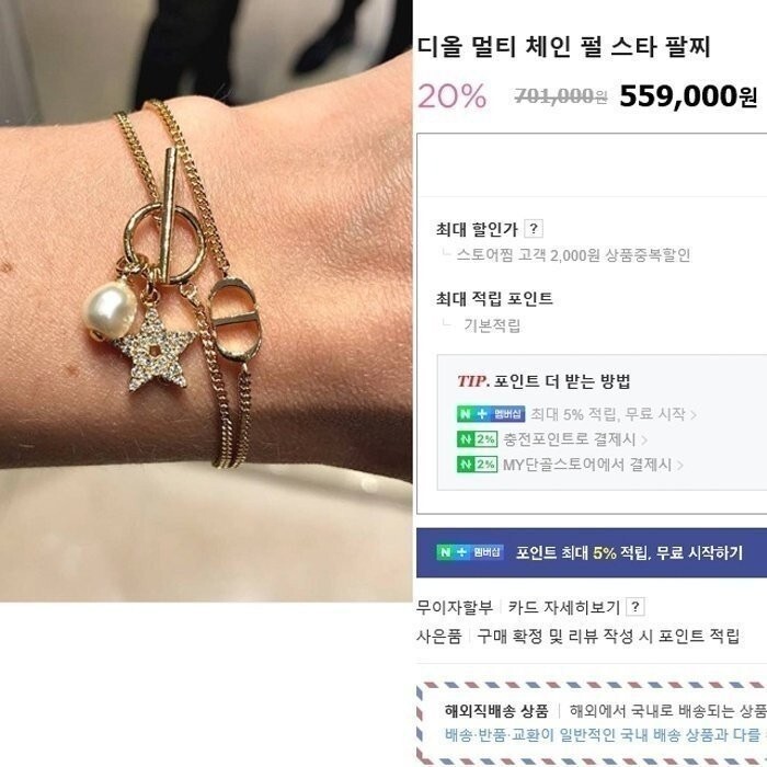 디올 멀티 체인 펄 스타 팔찌 여성용(1컬러)