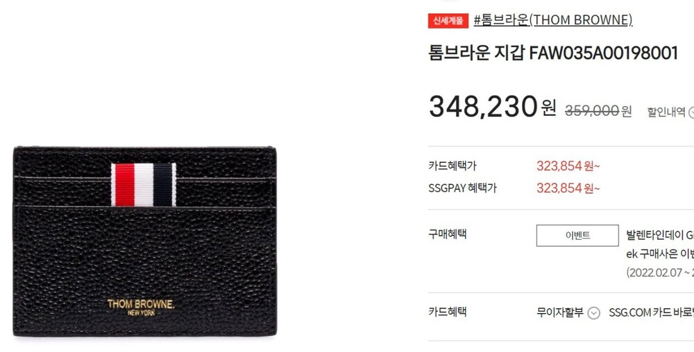 톰브라운 삼선 탭 페블 카드지갑 블랙 남여공용(1컬러)