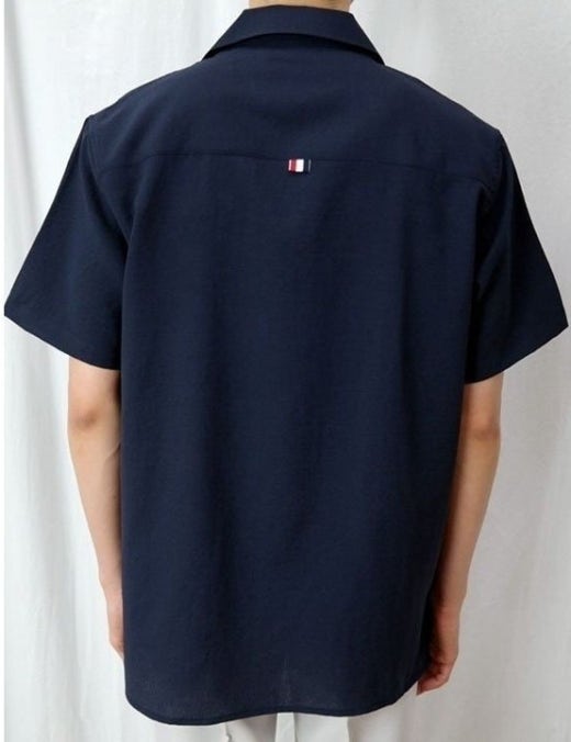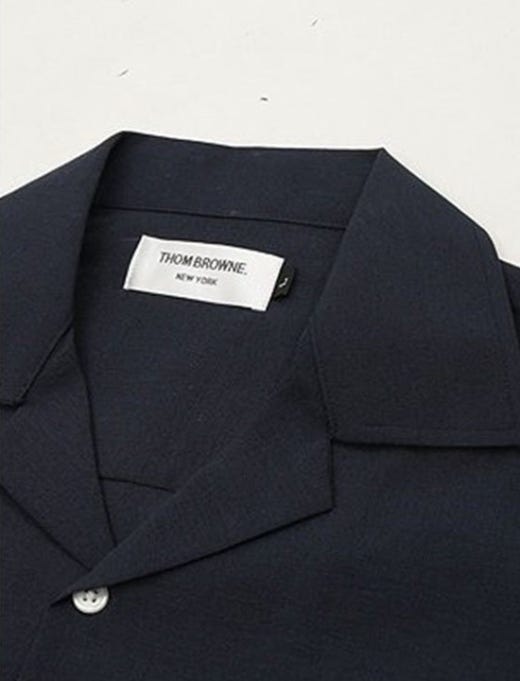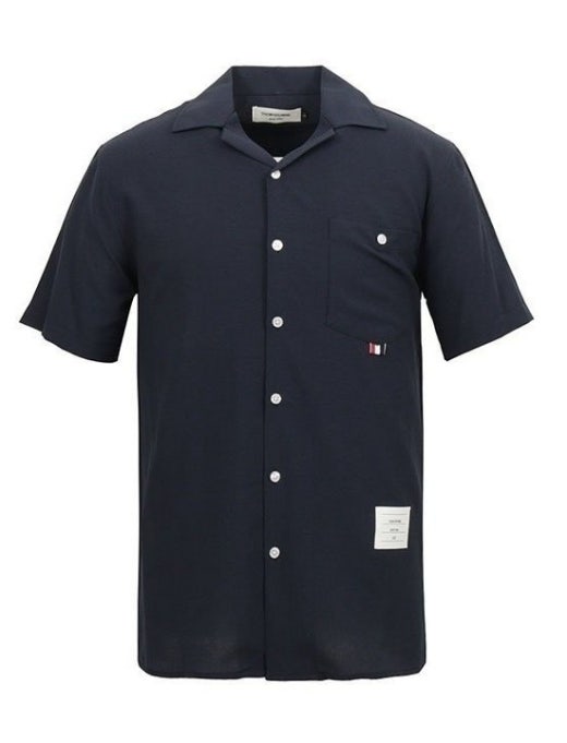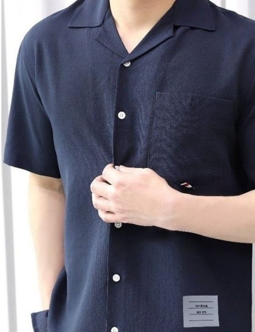 톰브라운 썸머 라미 오픈카라 반팔셔츠 네이비 남성용(1컬러)