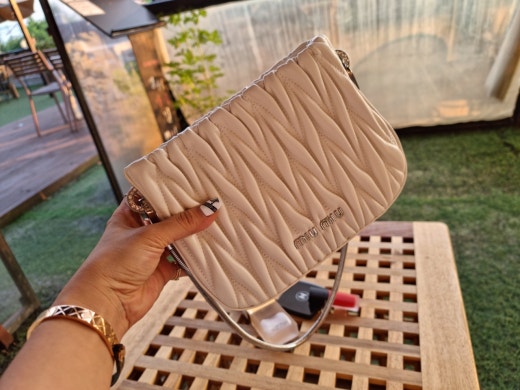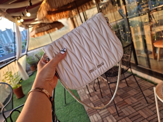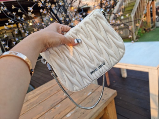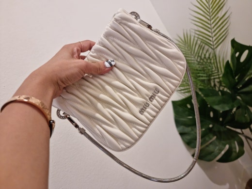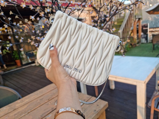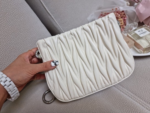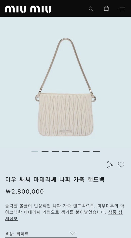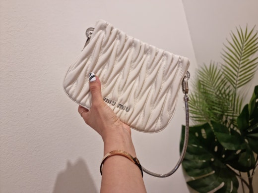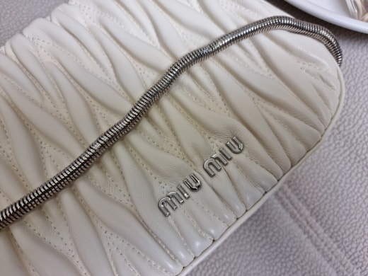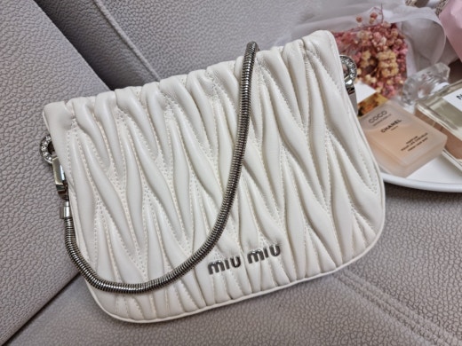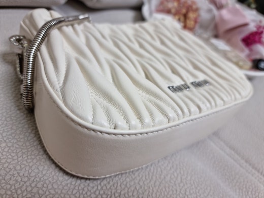 미우미우 쌔씨 마테라쎄 나파 가죽 핸드백 화이트 여성용(1컬러)