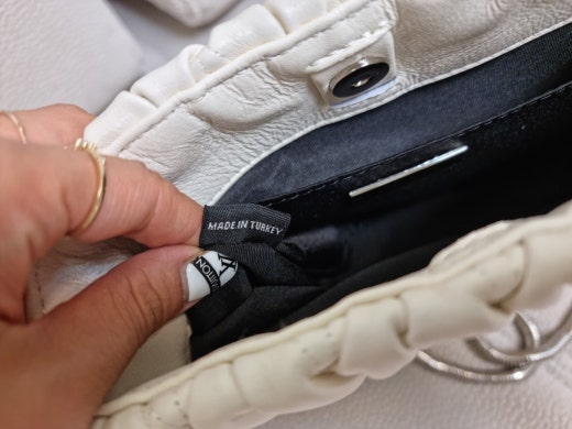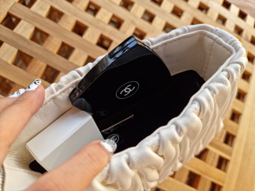 크리스탈이 들어간 체인 핸들 포인트와 전면 메탈 레터링 로고 등의 디테일과 하드웨어로 반짝임으로예쁘게 코디하세요