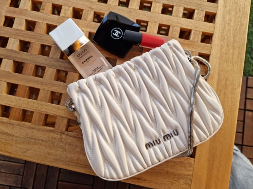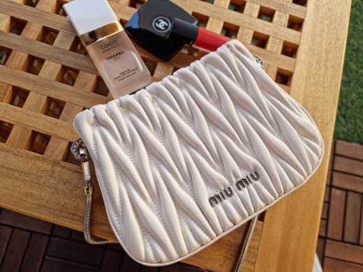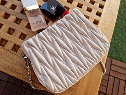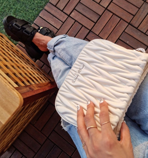 독특하면서도 부드러운 느낌의 마틀라세 패턴으로 매력적인 대비를 연출하는 가방이에요