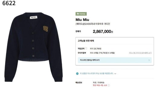 미우미우 브이 니트 가디건 네이비 여성용(1컬러) 📢세일