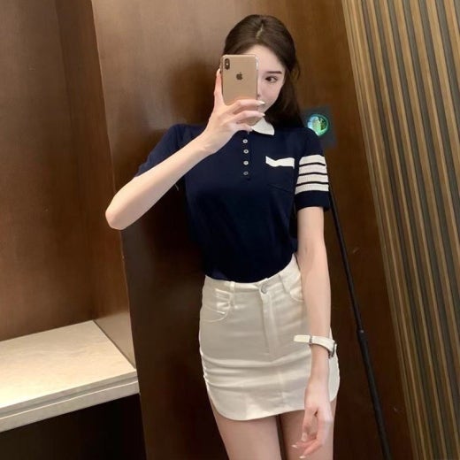 톰브라운 헥터 카라 반팔 니트 여성용(3컬러)