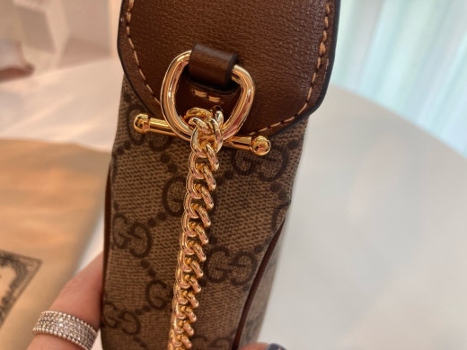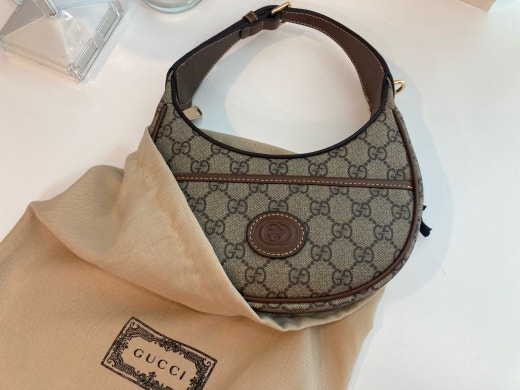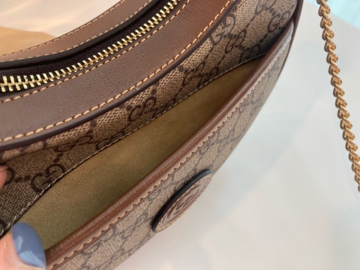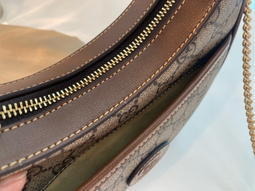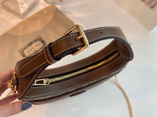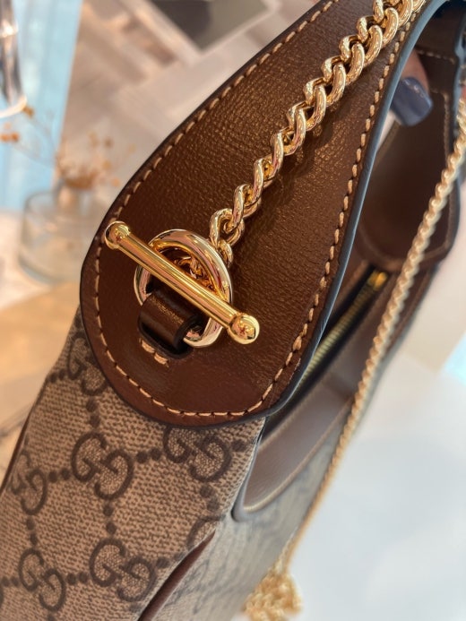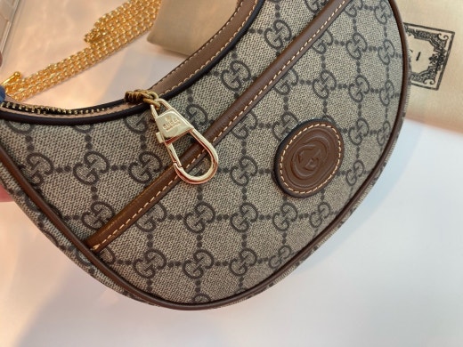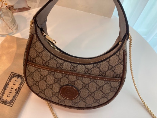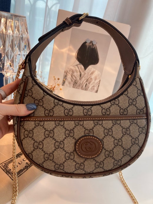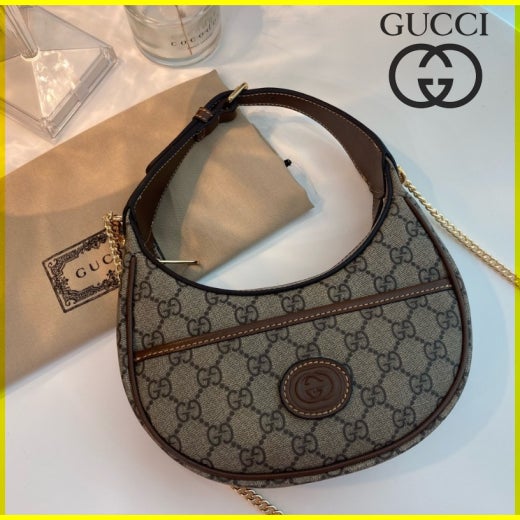 하프문 형태의 디자인으로 G로고 패턴에 레트로 무드를 더한 디자인입니다 핸들 스트랩이 있어 토트백으로 들 수 있으면서 앞포켓에는 휴대폰 차키 수납가능하며 체인 스트랩이 함께 있어 숄더백이나 크로스백으로도 들 수 있는, 다양하게 스타일링이 가능한 디자인입니다. 격식있는 스타일, 캐주얼한 스타일 모두 소화 가능해 활용도 높은 백이랍니다