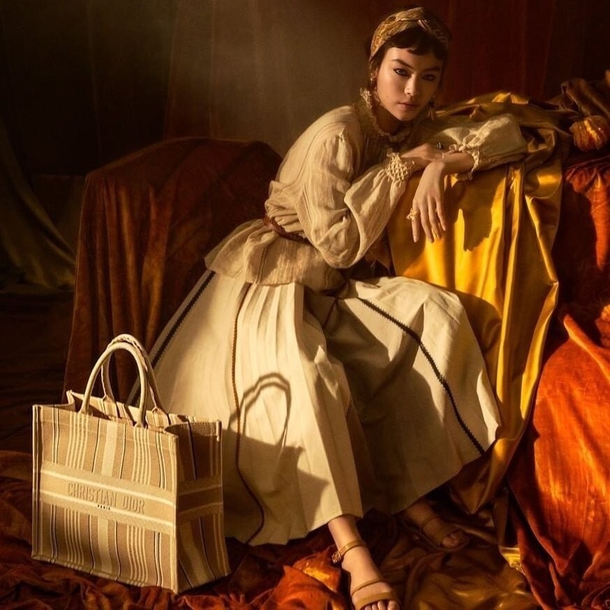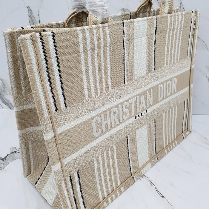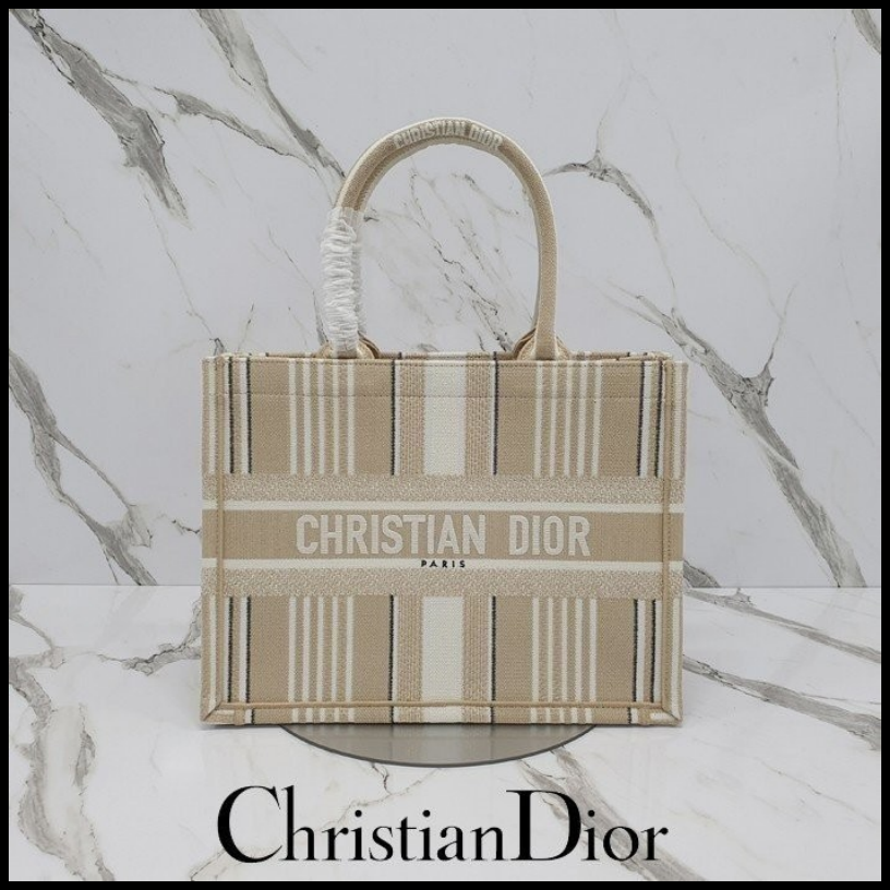 디올 프리미엄 스트라이프 북 토트 미디엄 백 베이지 여성용(1컬러)