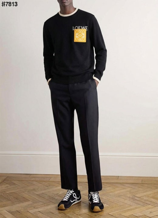 로에베 아나그램 자카드 페이크 포켓 울 블렌드 니트 풀오버 블랙 남성용(1컬러)