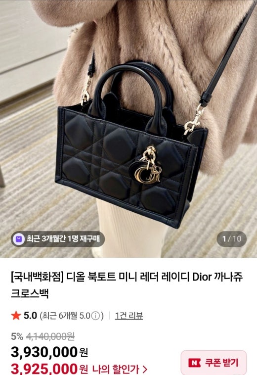 디올 북토트 미니 레더 레이디 Dior 까나쥬 크로스백 블랙 여성용(1컬러)