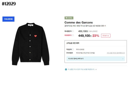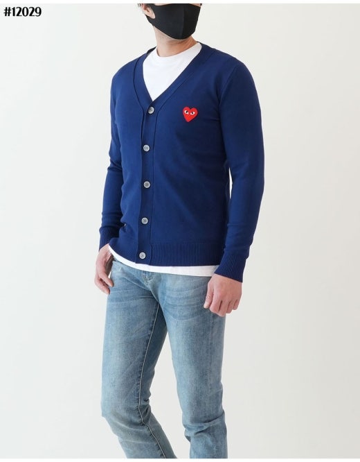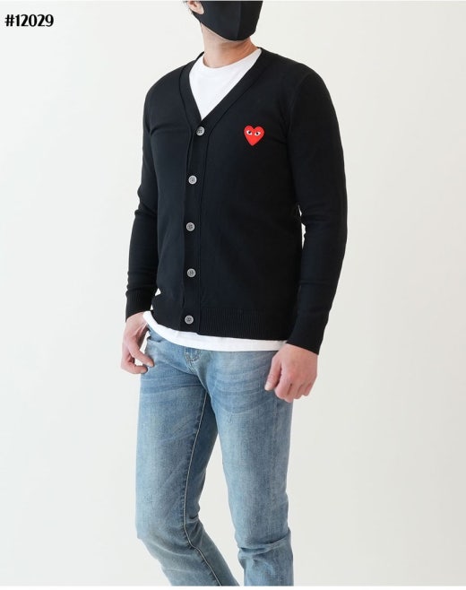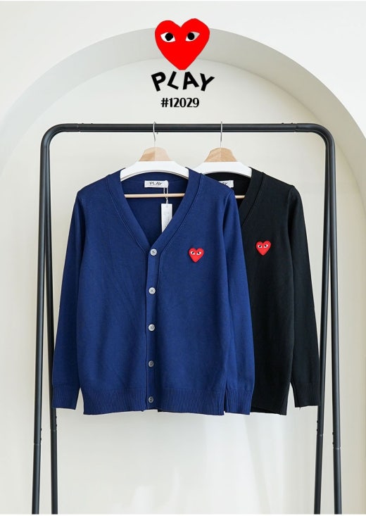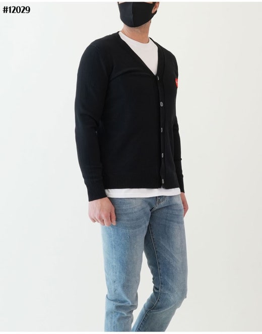 꼼데가르송 빅레드하트 로고 브이넥 니트 가디건 남성용(2컬러)