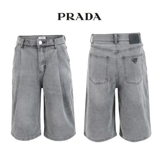 프라다 그레이 핀턱 히든밴드 6부 버뮤다 팬츠 남성용(1컬러)
