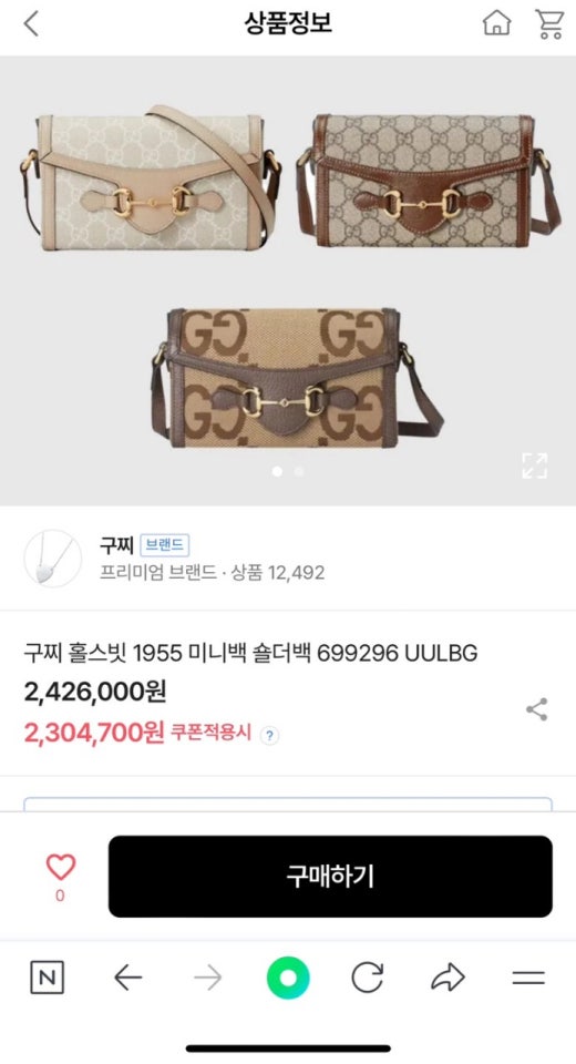 구찌 홀스빗 1955 미니백 베이지 여성용(1컬러)