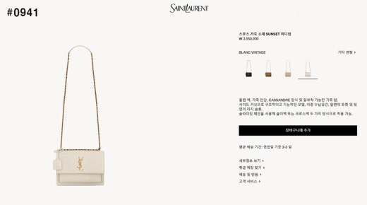 생로랑 선셋 미디움 체인 숄더백 아이보리 여성용(1컬러)
