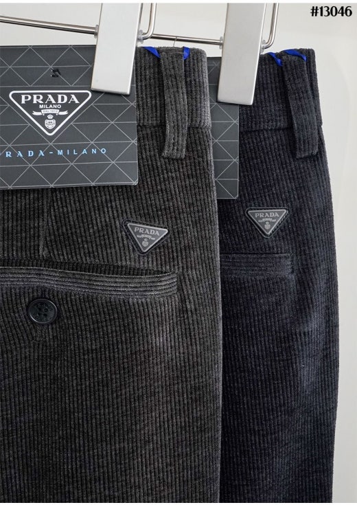 프라다 리나일론 블랙 삼각 패치 코듀로이 슬림핏 팬츠 남성용(2컬러)