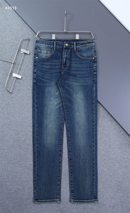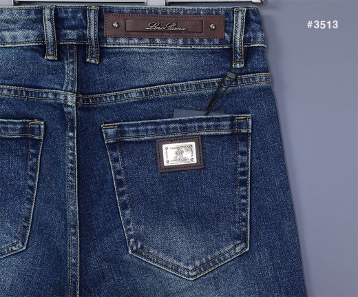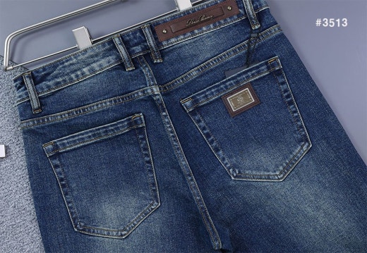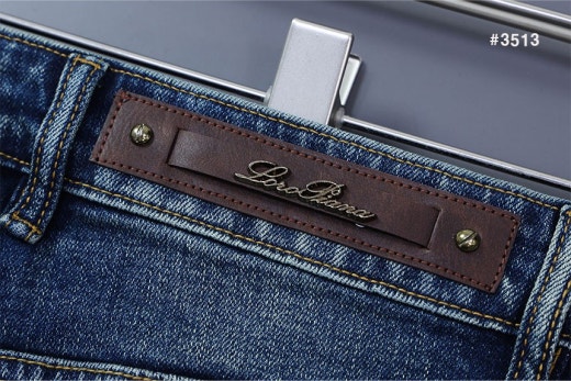 로로피아나 레더패치 스틸로고 워싱 데님 팬츠 중청 남성용(1컬러)
