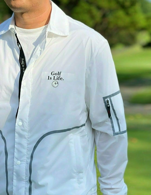 ➡️ 스트라이프 스판 원사를 적용하여 활동성이 우수한 셔킷형 자켓.