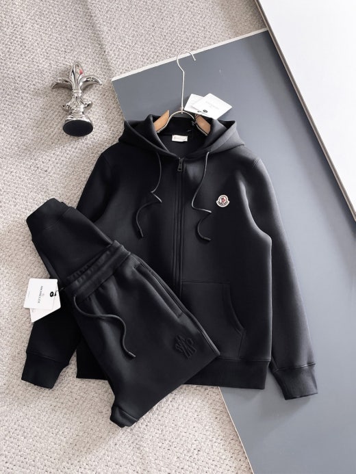 몽클레어 이니셜 엠보로고 후드집업 세트 블랙 남성용(1컬러)