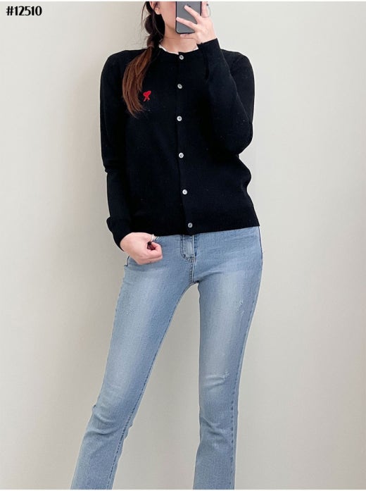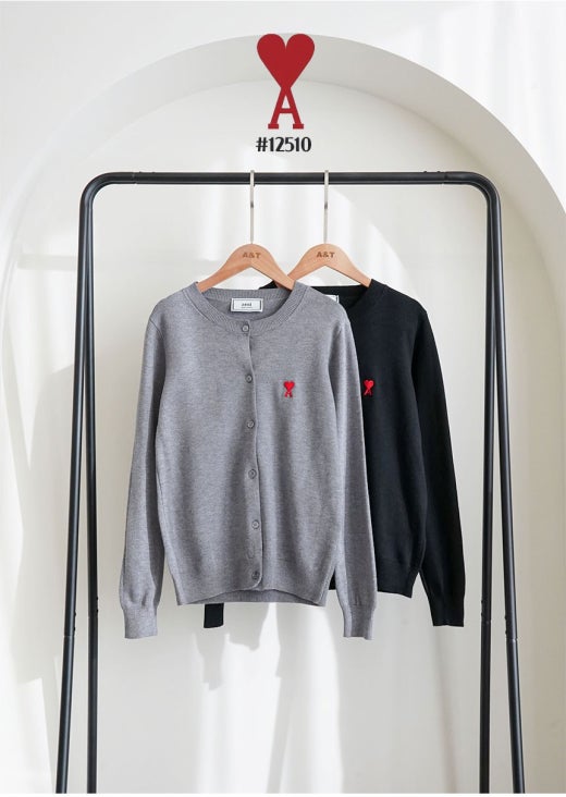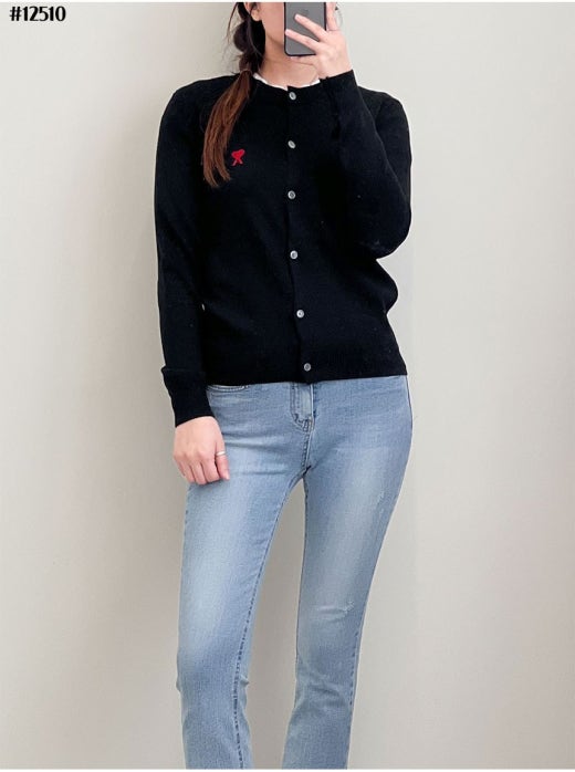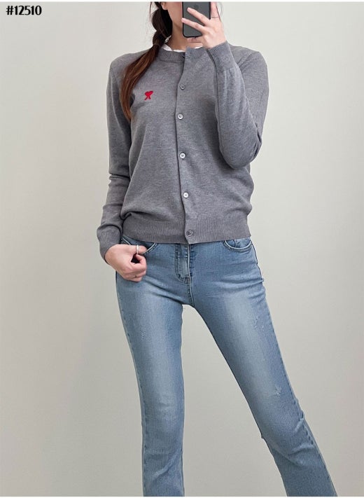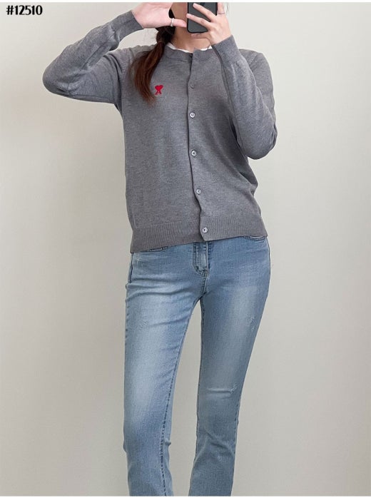 아미 스몰 하트 로고 라운드 니트 가디건 여성용(2컬러)