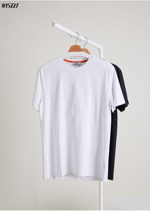 에르메스 엠브로이더드 H 로고 크루넥 코튼 저지 반팔티셔츠 남성용(2컬러)