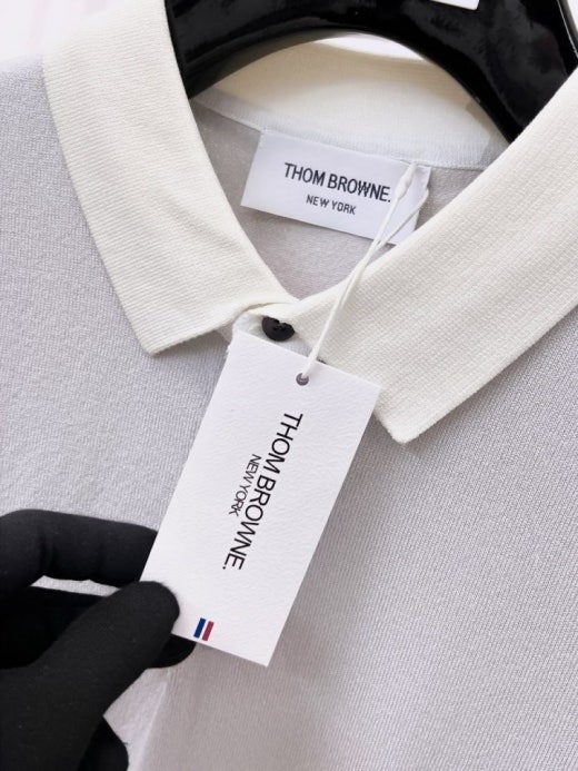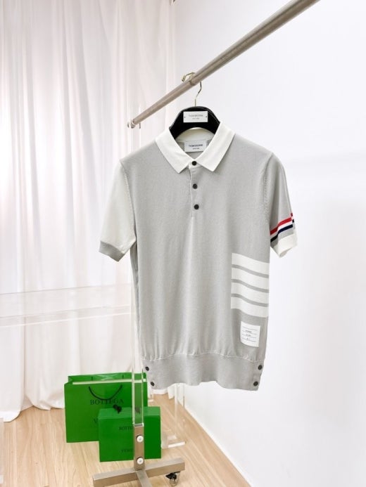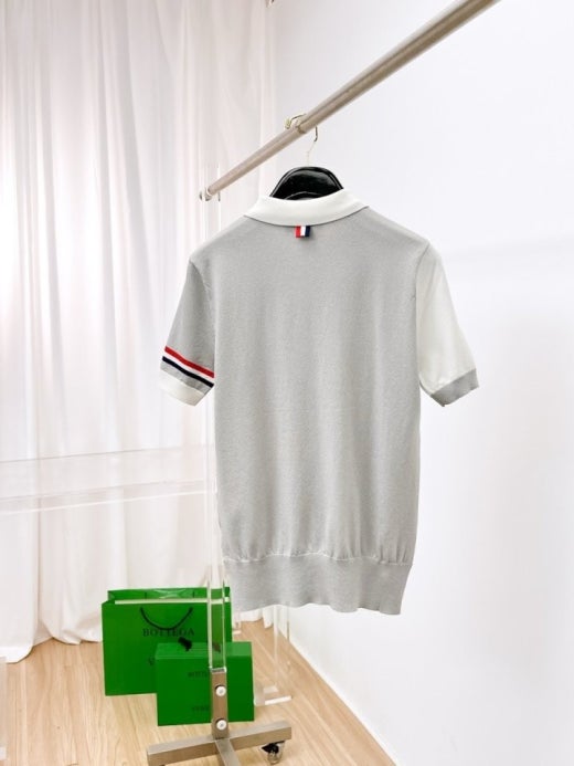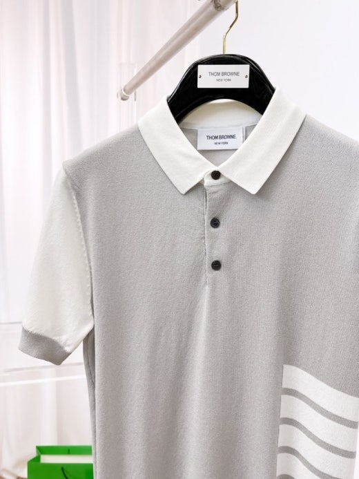 톰브라운 언발배색 PK니트 반팔 티셔츠 그레이 남여공용(1컬러)