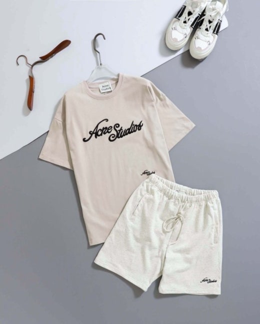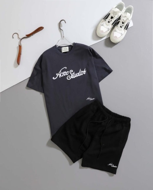 아크네스튜디오 자수 반팔 티셔츠 & 코튼 쇼츠 남성용(2컬러)