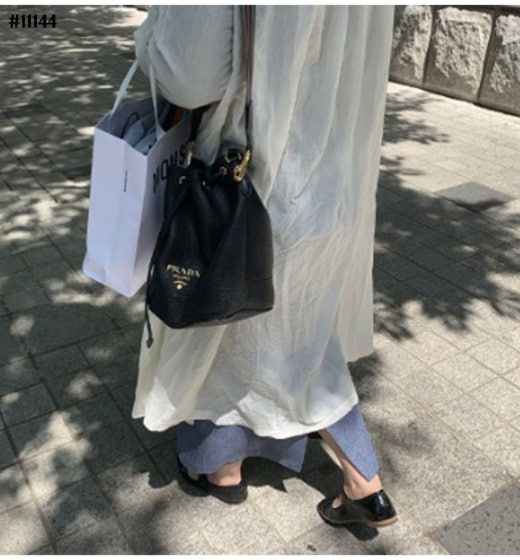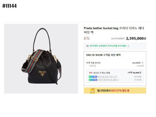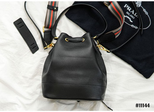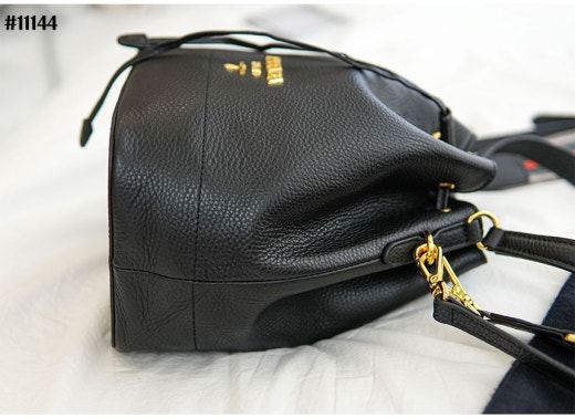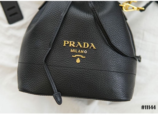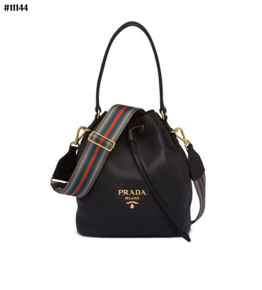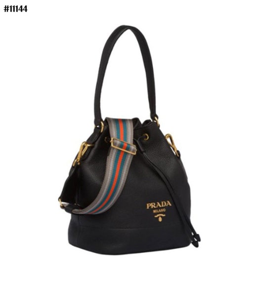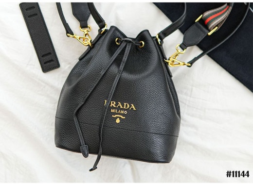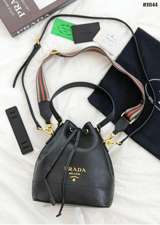 프라다 다이노 금장로고 레더 숄더 버킷백 블랙 여성용(1컬러)