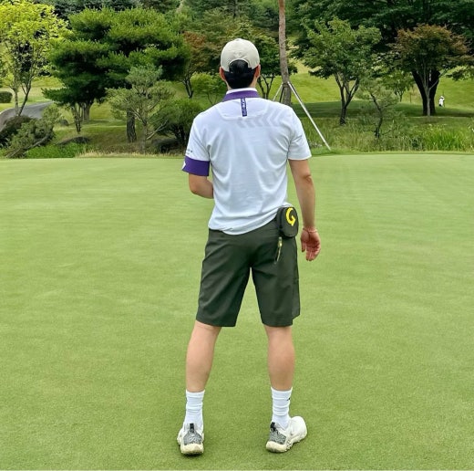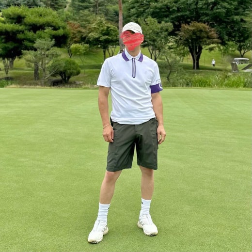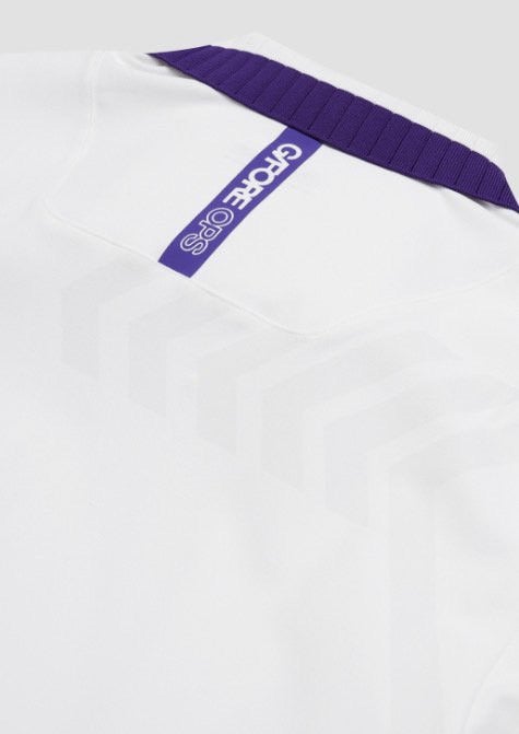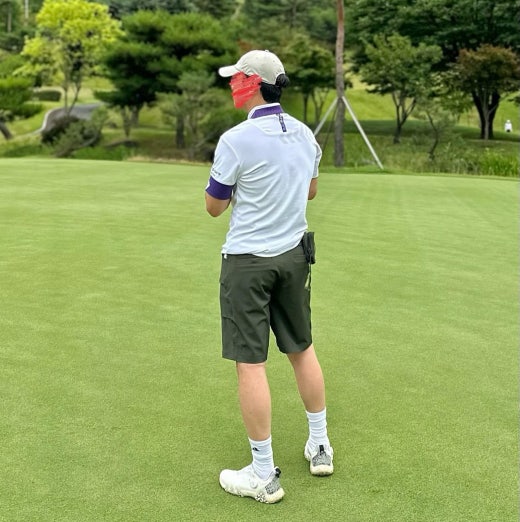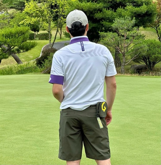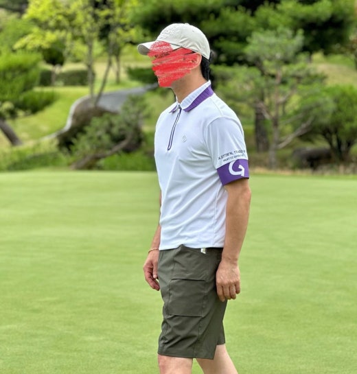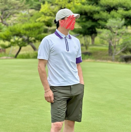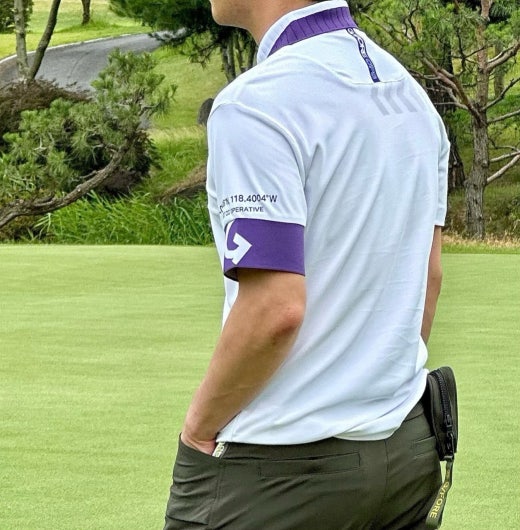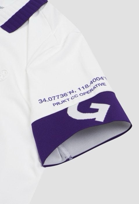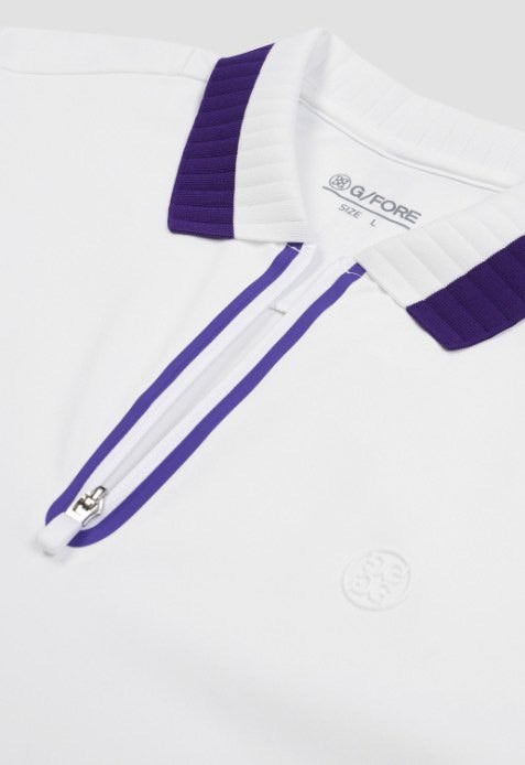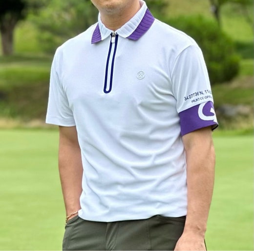 ➡️ 에리와 소매에 화이트와 퍼플 투톤으로 연출되어 경쾌한 골프러운드룩을 완성할수 있음