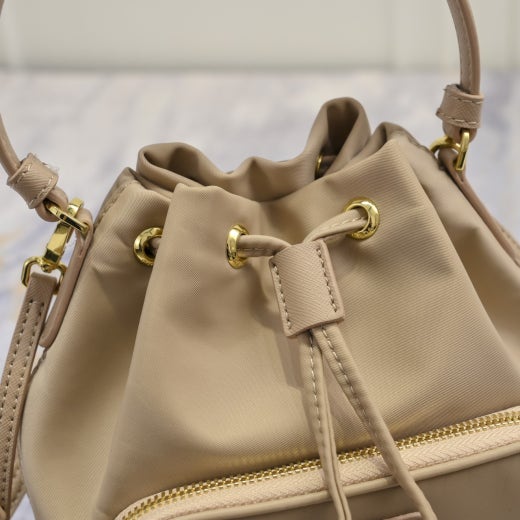 부드럽고 현대적인 형태의 프라다 듀엣 버킷백으로, 해양에서 수거하여 재생하고 정화한 플라스틱 소재로 만들어 끝없이 재생할 수 있는 패브릭인 프라다의 혁신적인 리나일론으로 제작했습니다. 외부 포켓과 에나멜 트라이앵글 로고가 있는 활용도 높은 실루엣은 사피아노 가죽 핸들과 숄더 스트랩이 있어 핸드백과 크로스바디 백으로 모두 착용할 수 있도록 디자인 되었습니다.