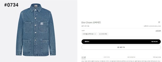 디올 참 오버 셔츠 연청 남성용(1컬러)