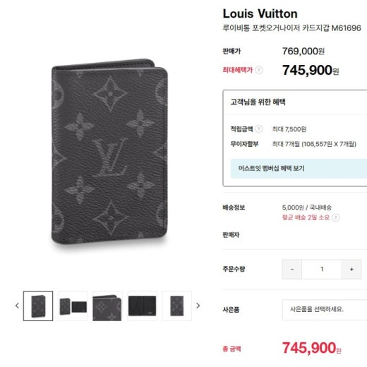 루이비통 오거나이저 카드지갑 블랙 남여공용(1컬러)