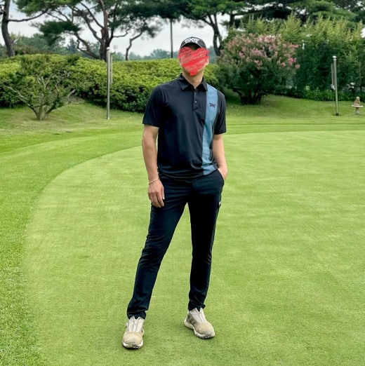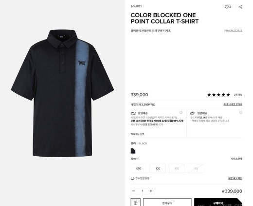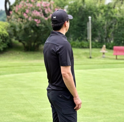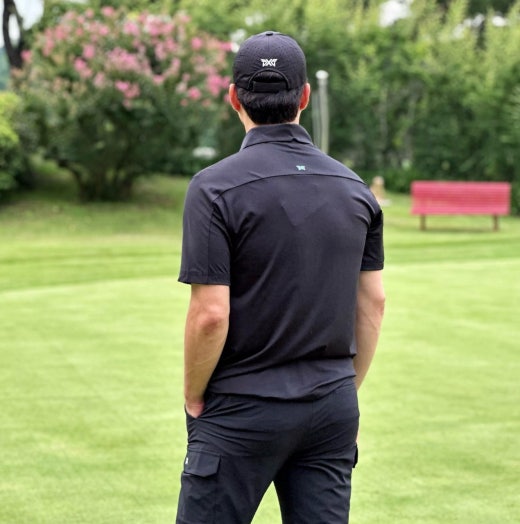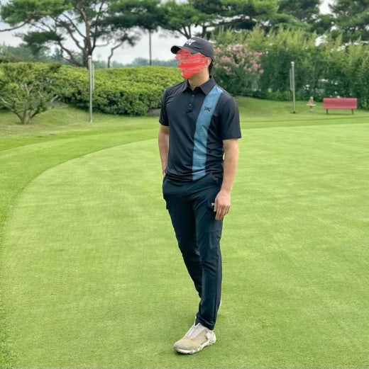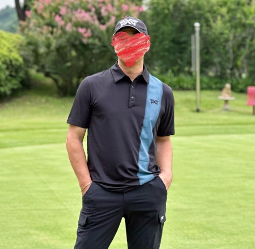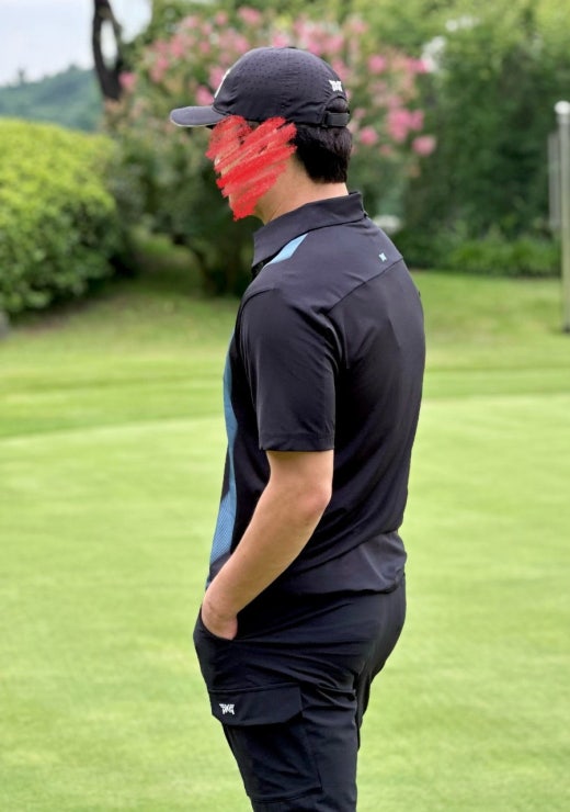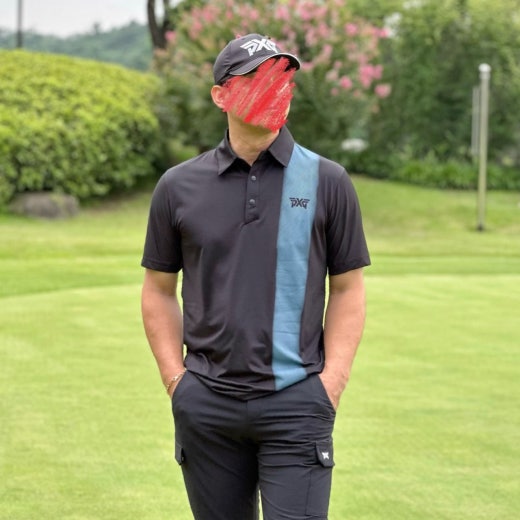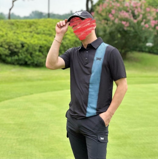 PXG 컬러블럭 원포인트 카라 반팔 티셔츠 블랙 남성용(1컬러)