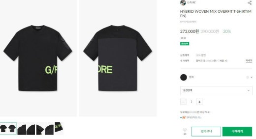 지포어 매.장.판 하이브리드 우븐 믹스 오버핏 티셔츠 블랙 남성용(1컬러)