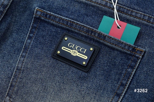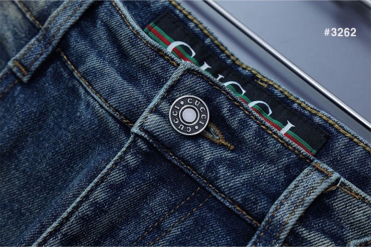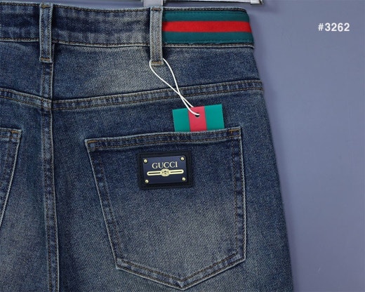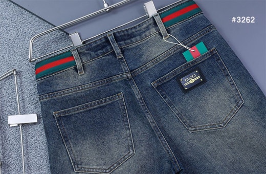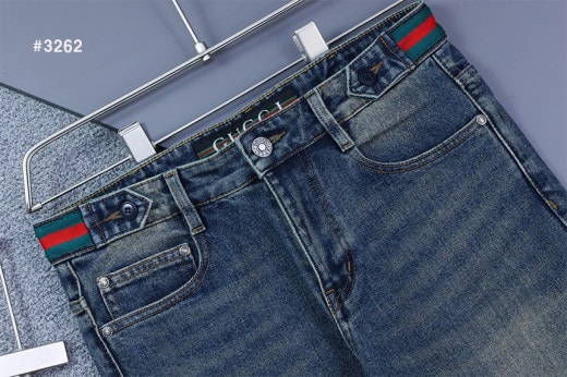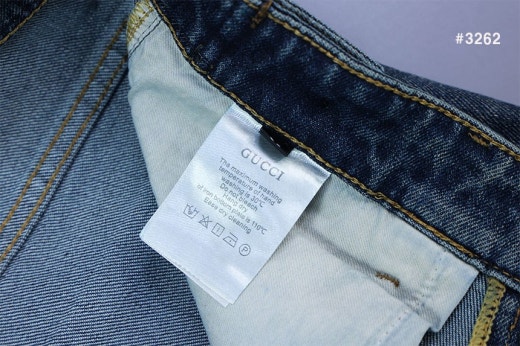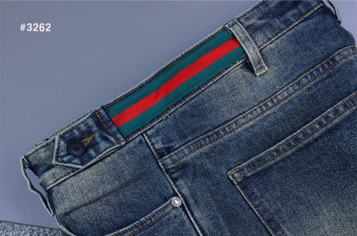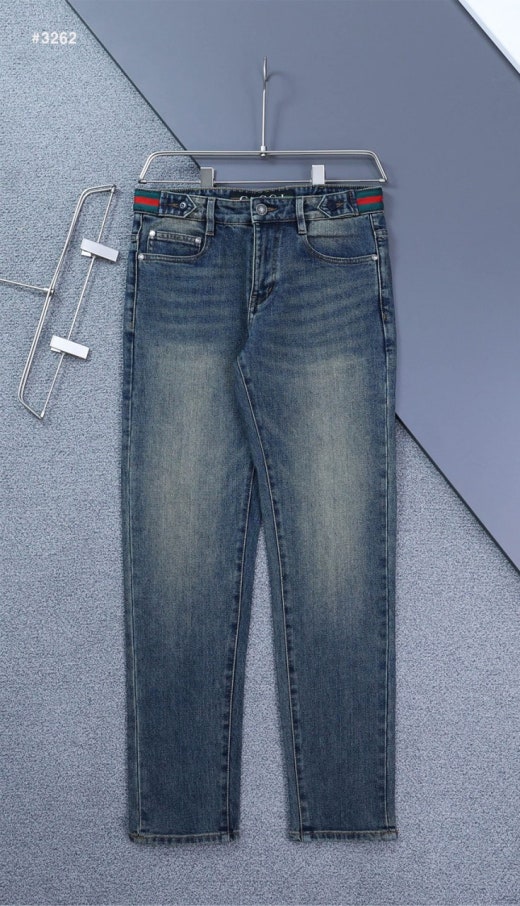 구찌 스틸로고 삼선밴딩 워싱 데님 팬츠 중청 남성용(1컬러)