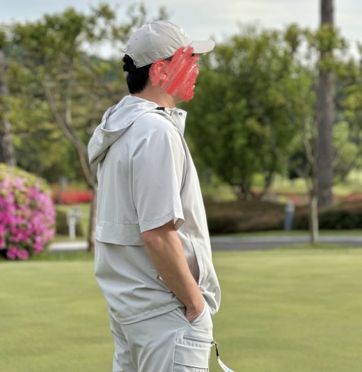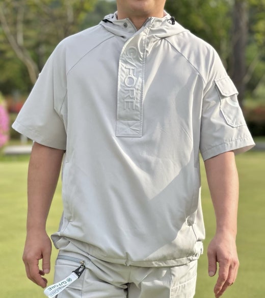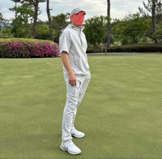 ➡️ 기능성 폴리 스판 소재의 아노락 쇼츠 자켓 과 카고 팬츠 세트.