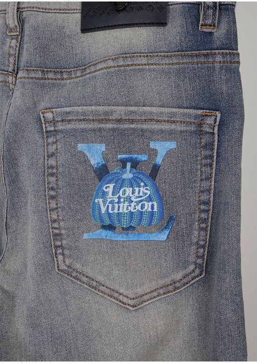 루이비통 펌킨 그래픽 워싱 슬림핏 데님 팬츠 남성용(1컬러)
